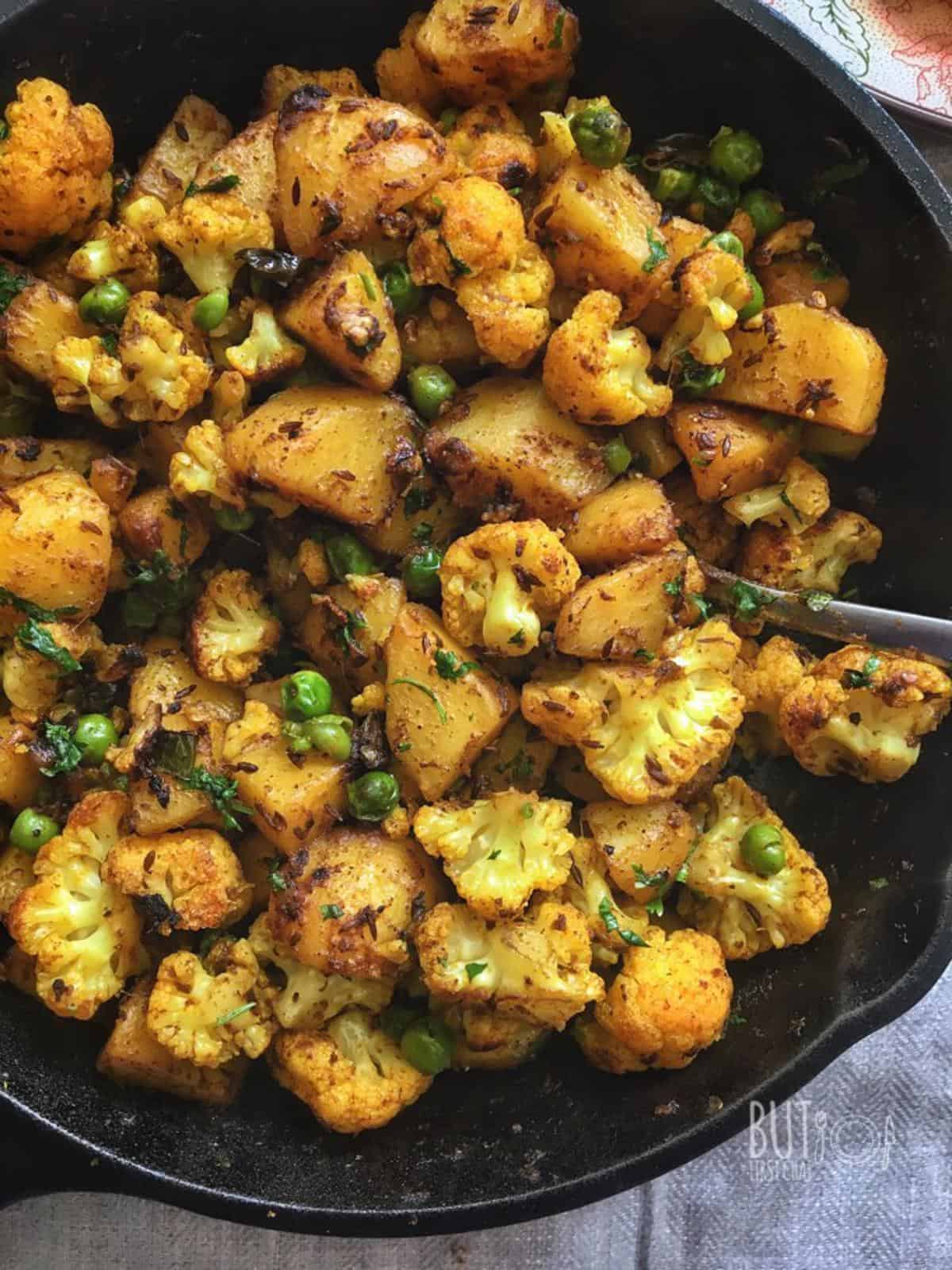 The real struggle in making aloo gobi matar dry recipe is to keep the veggies in shape.. Most of the time by the end of the cooking, there would be no sign of gobi. 😂 I am sure most of you faced that and probably thought the ones you see on blogs are not cooked through!